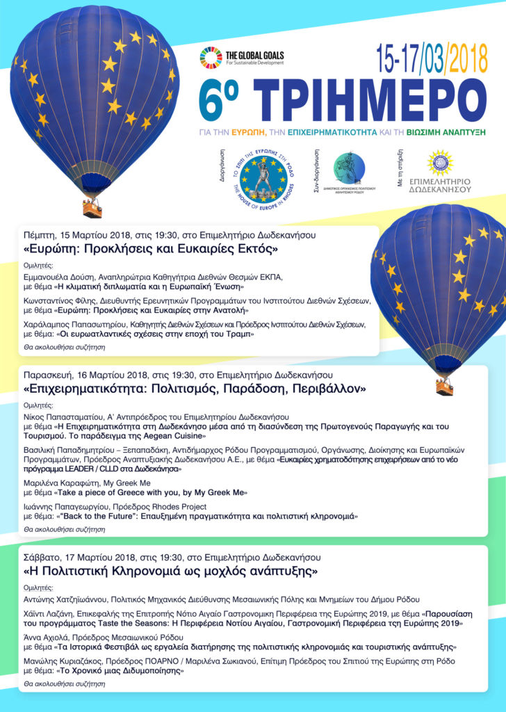 Το Σπίτι της Ευρώπης στη Ρόδο, συνδιοργανώνει με τον Δημοτικό Οργανισμό Πολιτισμού-Αθλητισμού Ρόδου, και με τη στήριξη του Επιμελητηρίου Δωδεκανήσου, το 6ο Τριήμερο για την Ευρώπη, την Επιχειρηματικότητα και τη […]